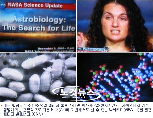 NASA의 우주생물학 연구원인 펠리사 울프 사이먼(Felisa Wolfe Simon) 박사와 애리조나주립大 연구진은 이날 생중계로 진행된 기자회견에서 생명체 필수 원소 중 하나인 인(P, 燐)을 대신해 독극물인 비소(As)를 기반으로 살 수 있는 박테리아를 발견했다고 발표했다.