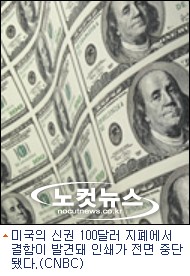 미국 정부가 위.변조 방지를 위해 도입하기로 한 신권 100달러짜리 지폐에서 심각한 결함이 발견돼 인쇄작업이 전면 중단됐다.