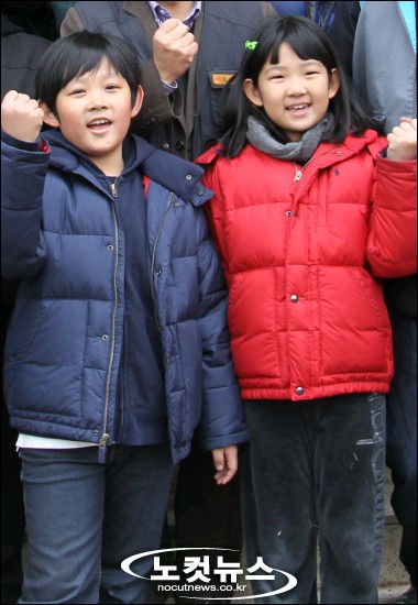 ''사랑의 온기나눔 3.6 프로젝트'' 행사가 19일 오전 서울 중계본동 백사마을 일대에서 열린 가운데 자원봉사에 참여한 故 최진실 자녀 환희(왼쪽), 준희가 행사가 끝난 후 기념사진을 찍으며 화이팅을 외치고 있다.
