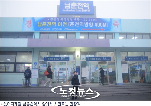 여행객들은 자신들이 타고 온 열차와 남춘천역사 등을 배경으로 사진을 찍으며 추억 쌓기에 여념이 없다.