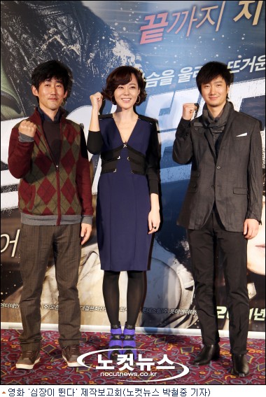 김윤진 박해일이 주연한 ''''심장이 뛴다''''는 다른 세계에 살던 두 남녀가 각자 가족의 생사가 걸린 절체절명의 상황에서 팽팽하게 맞서는 긴박감 넘치는 드라마. 2011년 1월 6일 개봉을 확정 짓고 후반작업에 박차를 가하고 있다.