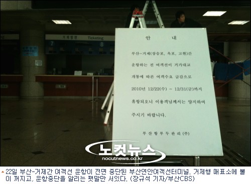 거가대교 개통의 여파로 이용객이 급감한 부산-거제간 연안여객선들이 22일부터 운행을 전면 중단해, 57년 동안 이어져온 뱃길이 끊길 위기에 처했다.