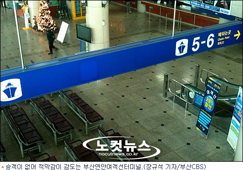 혹시나 여객선 운항중단 소식을 모르고 찾은 손님을 모시기 위해 서성거리던 택시기사들도 대부분 허탕을 치고 있을 정도로 여객선 터미널은 적막했다.