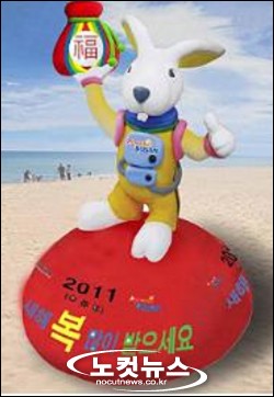 해운대해수욕장에 신묘년 ''토끼 조형물''