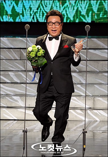 29일 저녁 경기도 일산 MBC 드림센터에서 열린 ''2010 MBC 방송연예대상'' 시상식에 시트콤 부문 특별상을 수상한 임하룡이 수상 소감으로 다이아몬드 스텝을 밟고 있다.