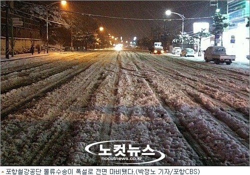 포항제철소는 육로·철도·해운을 통해 하루 4만톤의 철강재를 출하하고 있지만, 이번 폭설로 출하가 전면 중단됐으며, 철강공단 대부분의 업체들의 제품운송도 중단됐다.[BestNocut_R]