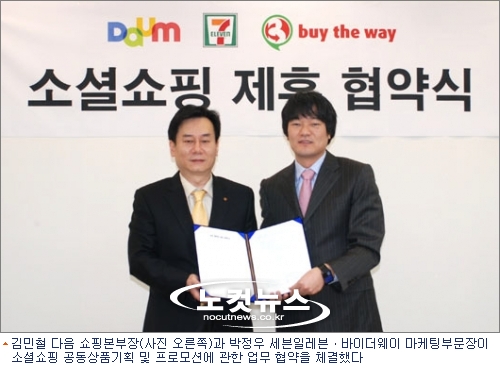 다음은 13일, 세븐일레븐 본사에서 세븐일레븐, 바이더웨이와 소셜쇼핑 공동상품기획 및 프로모션에 관한 업무 협약을 체결했다고 밝혔다.
