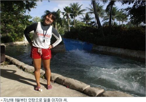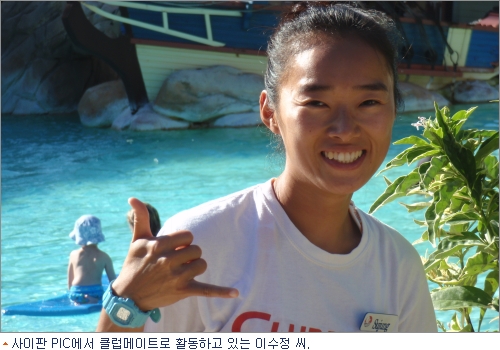이지아 씨에게 클럽메이트 생활 중 가장 좋은 점이 뭐냐고 물었다. 그녀는 사이판의 빼어난 자연환경이라고 말했다.
