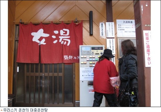무라스키 온천에는 8개의 료칸이 몰려있다. 공중목욕탕도 있었다. 일반인들이 부담없이 즐기는 곳이다.연간 10만명이 다녀간다. 동네 꼭대기쪽으로 올라가자 야산 자락에 온천수가 솟아오르는 샘이 보였다. 항상 25도를 유지한다.