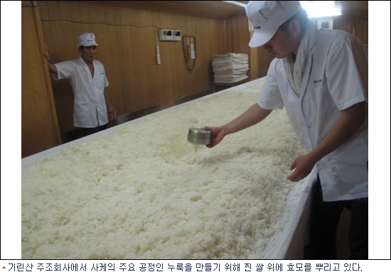 우리가 방문한 기린산 주조회사에서 현대식 사케제조시설을 견학할 수 있었다.누룩 배양과 효모의 발효과정 등 정밀한 제조과정은 어떻게 그렇게 감칠만한 사케의 맛을 탄생시킬 수 있는지 고개를 끄덕이게 했다.