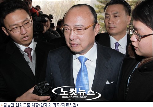 ▶ ·한화그룹 김승연 회장이 벌써 다섯 차례나 수사를 받았다는 건가 = 그렇다. 한화그룹 김승연 회장이 수사기관과 악연을 맺기 시작한 건 회장으로 취임한지 12년 만인 지난 1993년이다. 당시 김승연 회장은 동생 김호연 씨와 상속권 분쟁을 벌이던 중 외화 밀반출 혐의가 드러나 2개월간의 옥고를 치렀다. 김 회장이 외화를 밀반출해 미국 로스앤젤레스에 있는 영화배우 실베스터 스탤론이 살던 호화 주택을 구입한 사실이 드러났다. 2003년 시작된 대선자금 수사 때 서청원 당시 한나라당 대표에게 10억 원을 건넨 사실이 드러났지만 출국금지 하루 전날 부인과 함께 미국으로 연수명목으로 출국해 7개월 만에 귀국해 불구속 기소됐고 2심에서 벌금형으로 감형됐다.