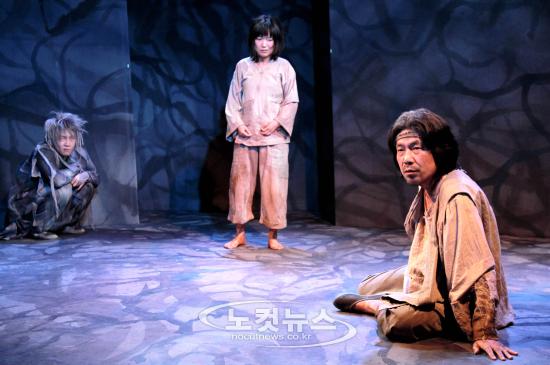 10일 오후 서울 대학로 문화공간 이다2관에서 열린 연극 ''해님지고 달님안고''(작 동이향·연출 성기웅) 프레스콜에서 배우들이 열연하고 있다. 연극 ''해님지고 달님안고''는 아버지와 단 둘이 고립된 상태에서 자라온 아이가 아버지의 구속과 집착에서 벗어나 바깥 세상으로 나아가는 과정을 그린 작품으로 오늘부터 대학로 문화공간 이다에서 공연된다.