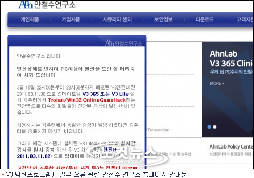 안철수연구소 관계자는 "엔진장애로 인하여 PC이용에 불편을 드린 점 머리숙여 사과드린다"고 밝혔다.