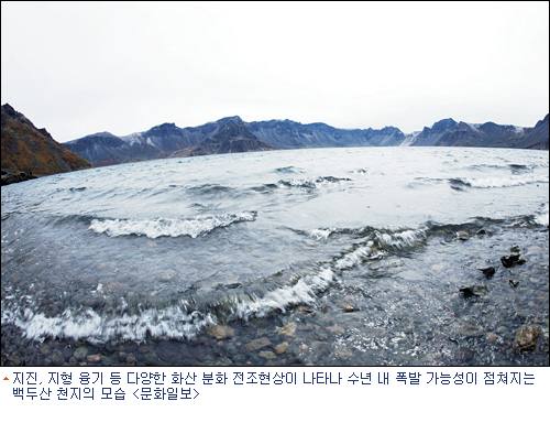 백두산 인근에서 2002년 이후 화산 폭발 징후가 자주 포착되고 있다. 우선 지진이 잦아졌다. 2002년 6월 중국 지린(吉林)성 왕칭(汪淸)현 지하 566㎞ 지점에서 규모 7.3의 강진이 발생한 이후 백두산 일대 지진이 급증했다. 2003~2005년 사이에도 매월 최대 270회에 달하는 크고 작은 지진의 진원지가 백두산 천지를 중심으로 밀집돼 있는 것으로 나타났다. 전문가들은 지진이 백두산 지하 마그마 방을 자극했을 것으로 보고 있다. 2002~2005년 사이 천지 주변 지형이 7㎝ 정도 융기한 것도 확인됐다. 백두산 지하 마그마 운동이 활성화되면서 압력이 높아진 마그마가 지반을 밀어올린다는 추론도 나온다. 2004년 해충이나 수목병 등의 특별한 사유 없이 백두산 일대 나무가 말라죽고, 천지 물 온도가 상승한 것도 화산 분출 조짐으로 해석된다.