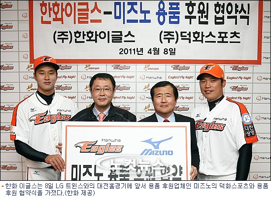 프로야구 한화 이글스는 8일 LG 트윈스와의 대전홈경기에 앞서 용품 후원업체인 미즈노의 덕화스포츠와 용품 후원 협약식을 가졌다.
