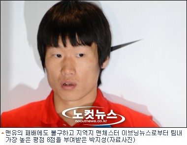 패배에도 불구하고 박지성(맨체스터 유나이티드, 이하 맨유) 만큼은 그 활약을 인정받았다.
