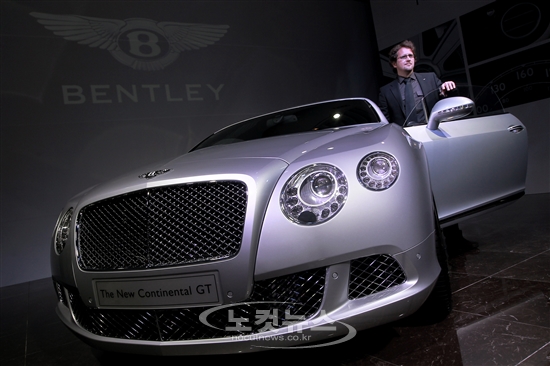 벤틀리모터스 코리아가 27일 서울 대치동 참존모터스 이벤트홀에서 수퍼카의 성능과 럭셔리 GT카의 안락한 승차감을 이상적으로 결합한 럭셔리 쿠페 ''신형 컨티넨탈 GT''를 선보이고 있다. 575마력의 강력한 주행 성능과 장인 기술력이 깃든 세련된 현대식 디자인을 자랑하는 벤틀리의 럭셔리 쿠페 ''신형 컨티넨탈 GT''는 2억9,100만원(부가세 포함)에 국내 판매된다.