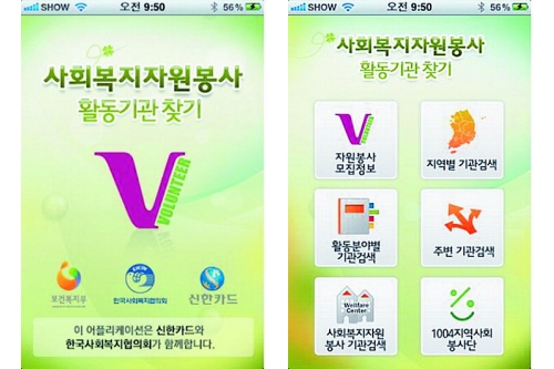 보건복지부와 한국사회복지협의회는 나눔문화 확산을 위해 ''사회복지자원봉사 활동기관 찾기'' 스마트폰 어플리케이션을 제작, 서비스를 제공하고 있다.