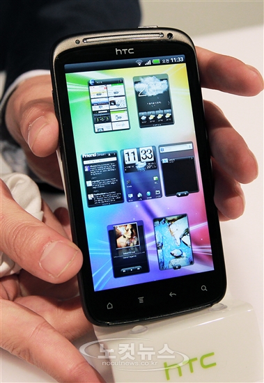 스마트폰 제조업체 HTC가 20일 서울 소공동 웨스틴조선호텔에서 자사의 글로벌 전략 모델인 슈퍼 멀티미디어폰 ''센세이션(Sensation)''을 선보이고 있다.