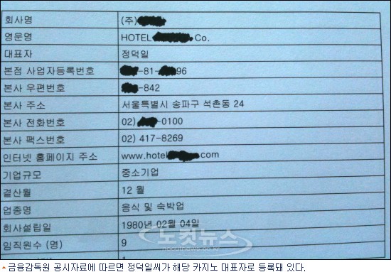 그런 그가 17년의 세월이 지난 2010년 2월 정덕일씨가 대표이사로 있었던 제주 모 카지노에 자신의 형을 감사 자리에 앉힌 것이다.