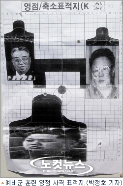 하지만 영점표적지를 받아든 예비군들은 황당하다는 반응을 보였다. 표적지에 세 명의 사진이 들어 있었는데 다름 아닌 김일성·김정일·김정은 3대부자였기 때문이다.