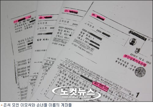 은씨 가족에 따르면 은씨 모친인 이모씨는 지난 2010년 부산저축은행에 2개의 계좌와 손녀 이름으로 1개의 계좌 등 3개의 계좌에 7,000만원의 예금을 갖고 있었다. 이 가운데 2개의 통장 5,000만원이 지난해 12월 6일로 만기가 돼 인출을 한 뒤 다시 이를 손녀 두명의 이름으로 명의를 변경해 재예치 해뒀다고 밝혔다.(사진 참조)[BestNocut_R]