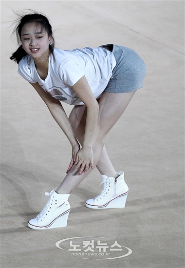 리듬체조 요정 손연재(18세·세종고) 선수가 9일 오후 서울 안암동 고려대학교 화정체육관 특설무대에서 리듬체조 갈라쇼인 ''LG 휘센 리드믹 올스타즈(WHISEN Rhythmic All Stars 2011)''를 앞두고 리허설을 갖고 있다.