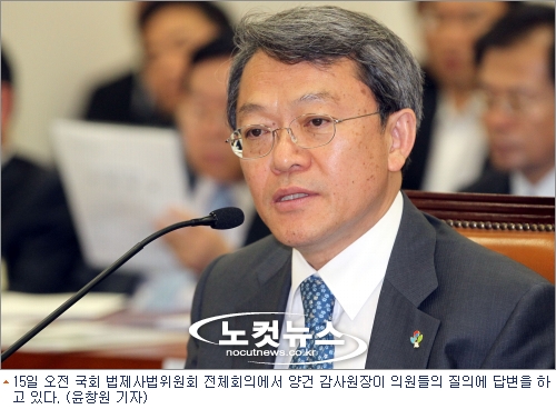 양 원장은 이날 국회 법제사법위에 출석해 "정치인 출신은 일정기간을 거치지 않으면 감사위원 후보로서 부적합하지 않느냐는 방향에서 법률개정안을 검토하고 있다"고 말했다.