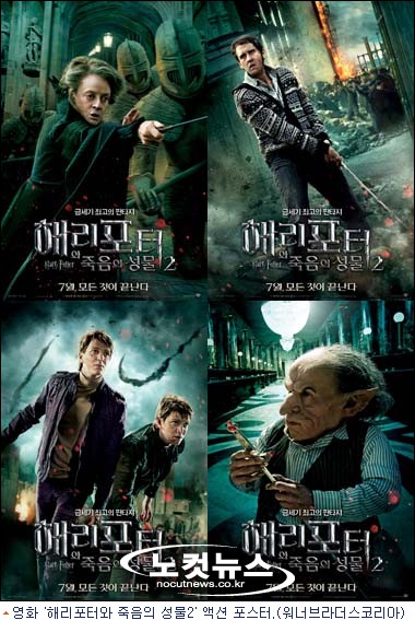 7월 13일 전 세계 최초로 국내에서 개봉될 ''해리포터와 죽음의 성물 2''가 11종 액션 포스터를 공개했다. 해리와 론, 헤르미온느 삼총사를 비롯해 최강의 적 볼드모트와 엄청난 비밀의 주인공 스네이프 교수 등 주요 등장인물들이 대거 등장해 마지막 대결에 대한 호기심을 자극한다.