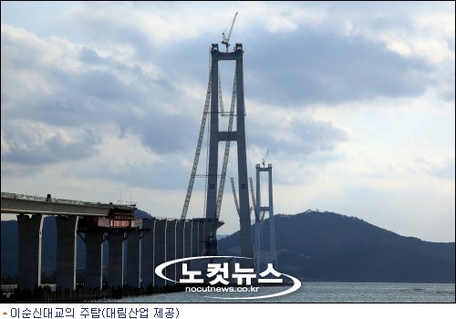 최고의 기술력을 필요로 하는 해상 특수교량의 결정체인 현수교인 이순신대교는 최근 주탑공사를 마무리하며 웅장한 자태를 드러냈다.