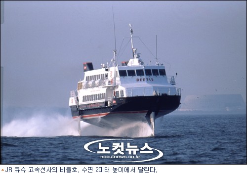 JR 큐슈 고속선사의 비틀호. 수면 2미터 높이에서 달린다.