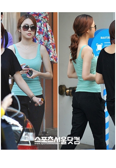장마가 잠시 소강상태를 보인 이날 유인나는 30도가 웃도는 높은 기온 탓인지 옅은 청록색 민소매티셔츠와 얼굴을 전부 가릴 듯한 큰 선글라스를 착용했다. 검은 긴 바지가 다소 답답함 느끼게 했지만 맨발에 샌들을 신고 거리를 거니는 모습은 뜨거운 여름을 즐기는 모습이었다.