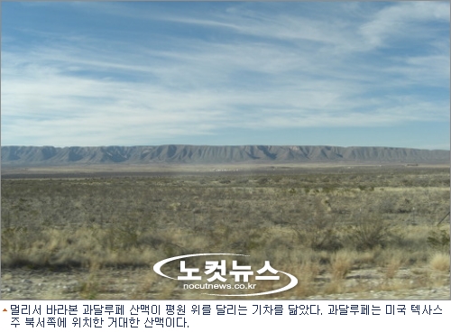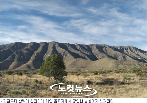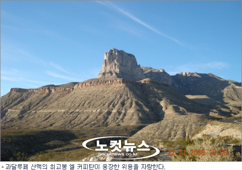 스페인 사람들은 텍사스 최북단, 텍사스에서 가장 높은 봉우리에 엘 커피탄(el capitan, 2464m)이란 이름을 붙이고 앨 커피탄에서 뉴멕시코에 걸쳐 뻗어 있는 산맥을 과달루페(Guadalupe)라고 명명했다. 과달루페 산맥은 사막 위를 달리는 거대한 기차의 모양을 하고 있다. 주변에 아무 것도 없는 평원 그래서 산맥은 더욱 도드라져 보이고 위엄이 서려 있다. 산호초처럼 길죽하게 뻗은 산맥의 길이가 무려 40km나 되고 이 때문에 산을 관통하는 도로 건설의 필요성이 더 시급하지만 산을 포함한 5700만평이 야생보호구역으로 지정돼(1978년)관통도로 건설이 무산됐다. 그 덕분에 과달루페 산맥의 자연은 비교적 양호한 상태로 보전되고 있다.