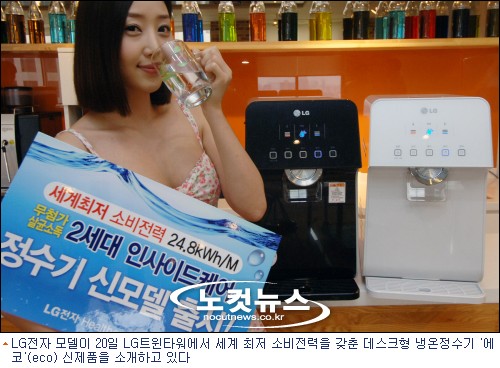 LG전자가 세계 최저 소비전력을 갖춘 데스크형 냉온정수기 ''에코''(eco)와 저수조 없이 바로 정수하는 직수방식 정수전용 정수기를 출시했다.