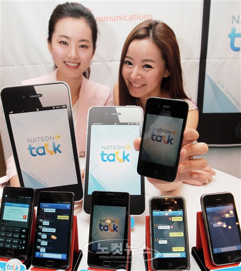 인터넷-통신업체들의 모바일 메신저 각축전이 가파르게 전개되고 있는 가운데 SK커뮤니케이션즈가 20일 서울 소공동 프라자호텔에서 유무선 연동 모바일 메신저 ''네이트온톡(Talk)''을 선보이고 있다. 네이트온톡은 네이트온과의 유무선 연동과 파일 전송, 모바일 인터넷 전화(mVoIP)서비스가 가능하며, 안드로이드 버전으로 우선 출시됐다.