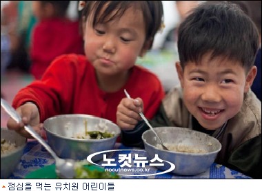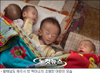 {IMG:12}그러나 평양을 제외한 평안남도와 황해도 지역에서는 식량난을 감안하듯 유치원과 탁아소 어린이들의 모습에서 영양이 부족한 상태임을 실감할 수 있다.