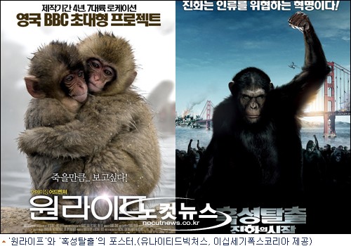 원숭이를 앞세운 ''원라이프''와 침팬지가 큰 비중을 차지하는 ''혹성탈출:진화의 시작''(이하 ''혹성탈출'')이 그 주인공이다. 두 작품은 메인 캐릭터로 유인원을 내세워 관객들의 호기심을 자극한다. 8월 18일에 맞붙을 원숭이와 침팬지, 두 유인원의 자존심을 건 흥행 대결이 관심을 끈다.