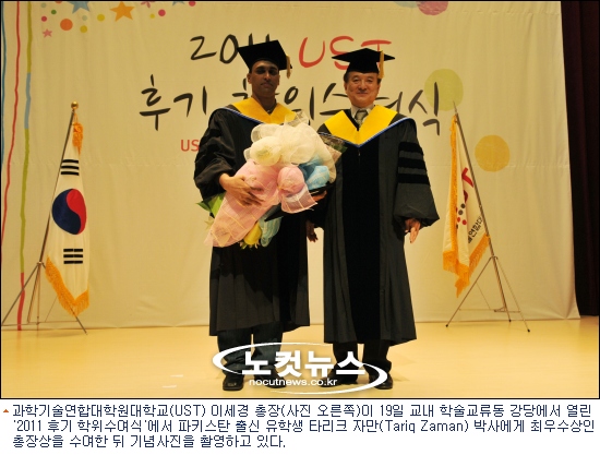 대전 대덕연구개발특구 내 과학기술연합대학원대학교(UST)는 19일 교내 학술교류동 강당에서 ''2011 후기 학위수여식''을 개최했다.