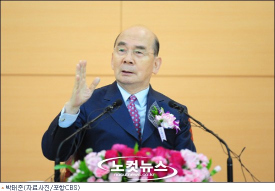 박태준 포스코 명예회장이 19일 저녁 6시30분 포항 포스코 한마당체육관에서 퇴직 직원 370여명들을 초청해 석식 만남의 행사를 갖고 격려했다.
