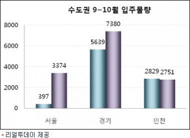 리얼투데이 조사 결과 9~10월 수도권 아파트 입주물량은 총 2만2천370가구인 것으로 집계됐다.