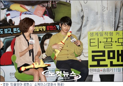 영화 ''티끌모아 로맨스''의 두 주인공, 한예슬과 송중기가 촬영 에피소드 및 후유증을 털어놨다. ''티끌모아 로맨스''는 마성의 청년백수 천지웅(송중기)과 국보급 짠순이 구홍실(한예슬)이 벌이는, 님도 보고 돈도 버는 생계밀착형 로맨스.