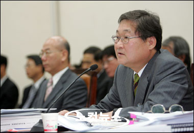 KBS 정연주 사장이 4일 국정감사에서 국회의원들의 질의에 답하고 있다. (한대욱기자/노컷뉴스)