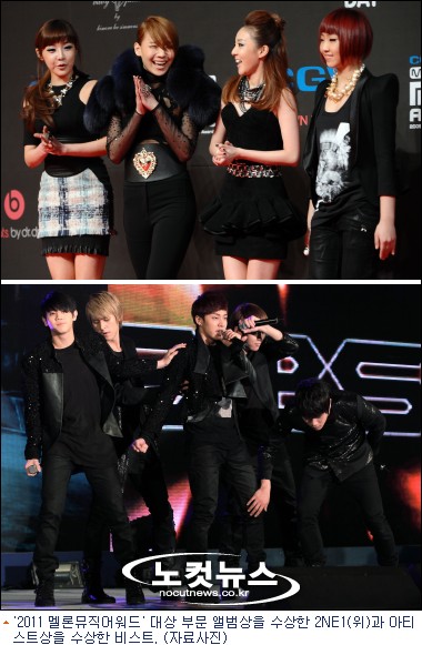 24일 오후 방이동 올림픽공원 체조경기장에서 열린 올해 사랑을 받은 아티스트와 음원을 시상하는 음악 시상식 ''2011 멜론뮤직어워드''에서 2NE1과 비스트, 아이유가 대상의 영광을 누렸다.