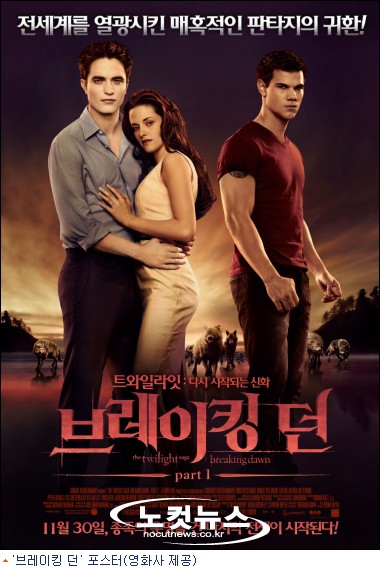 ''트와일라잇''의 네 번째 시리즈 ''브레이킹 던 Part1''(이하 ''브레이킹 던'')은 고등학교를 막 졸업한 풋풋한 10대 커플이 온갖 장애와 삼각관계 등을 극복하고 마침내 부부가 됐음을 선언했다.
