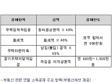 전세자금대출 원리금상환액과 월세액, 주택마련저축 납입액은 모두 합쳐 연 300만원까지 공제된다.