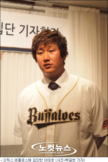 한국의 간판 타자 이대호(28)가 일본프로야구 오릭스의 유니폼을 입었다. 이대호는 6일 부산 웨스턴조선비치호텔에서 오릭스의 오카다 아키노부 감독, 무라야마 요시오 단장이 참석한 가운데 입단을 공식 발표했다.