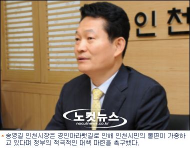 송영길 인천시장이 8일 한강과 서해를 잇는 경인아라뱃길로 인해 인천시민의 불편이 가중하고 있다며 정부의 적극적인 대책 마련을 촉구했다.