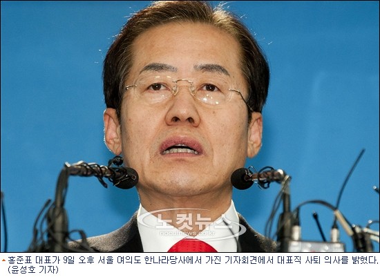 선관위 디도스 공격 사건 이후 사퇴압력에 시달리던 한나라당 홍준표 대표가 결국 9일 대표직에서 사퇴했다.