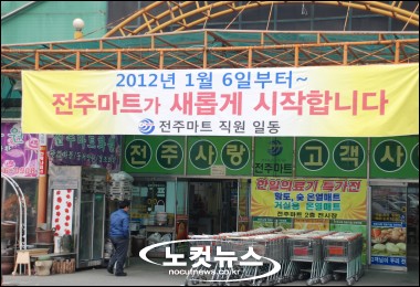 지난해 12월 문을 닫았던 전주시 효자동의 전주마트가 직원 자체 운영체제로 탈바꿈한 뒤 최근 다시 영업에 들어갔다.