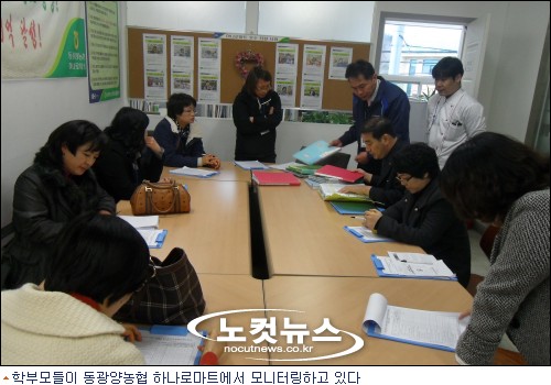 학부모들이 동광양농협 하나로마트에서 모니터링하고 있다